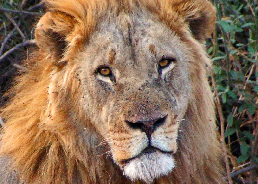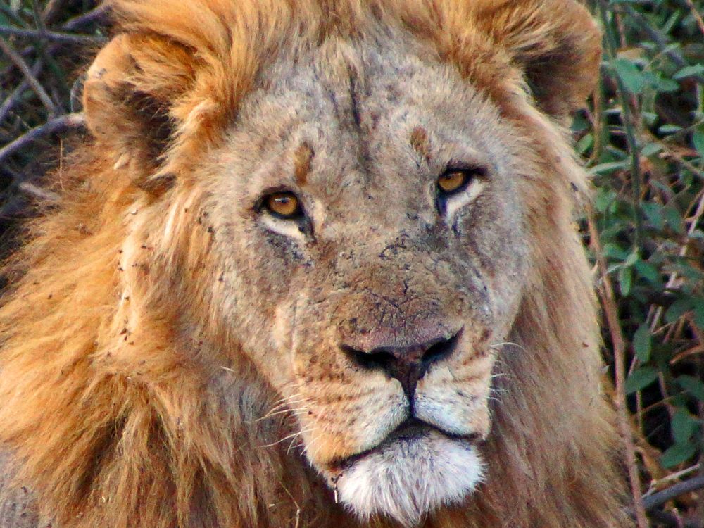 Male lion resting after feasting, in Chobe, Botswana, Africa