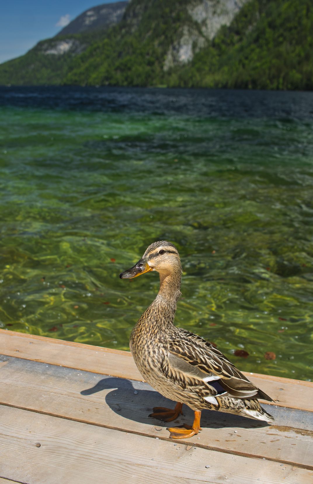 we were eating our picnic on the docks of St barts - Konigsee. This duck was curious and came very close to us, so of course I took its portrait