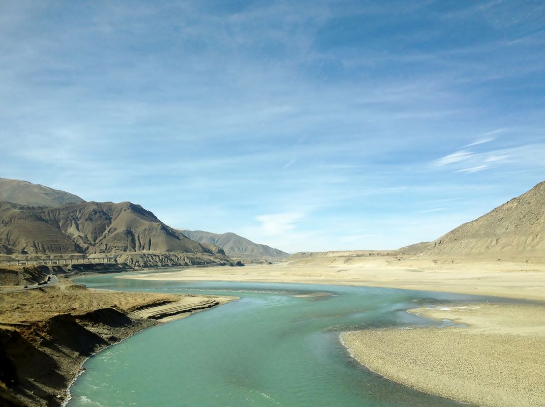I took this picture in Tibet - A man-made lake. I like how the blue sky compliments the surroundings on the Tibetan plateau.