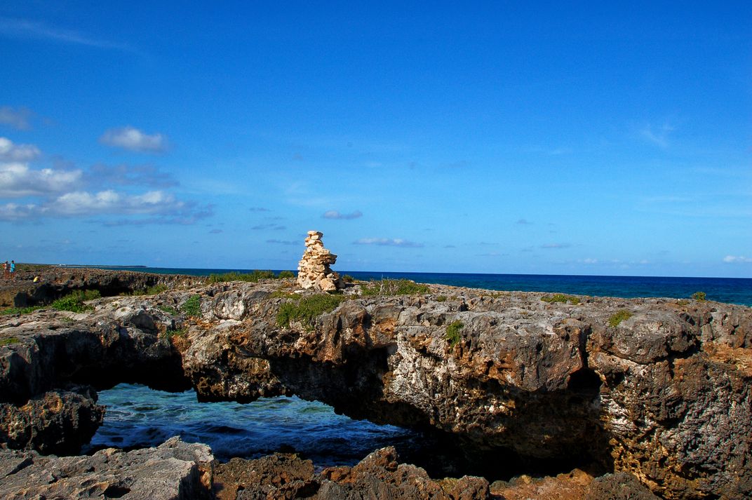 Man-made rock window on top of natural one