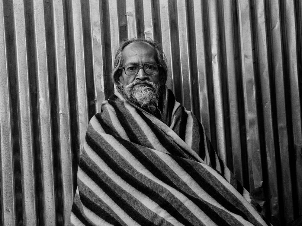 The main transit camp for Gangasagar pilgrims in Kolkata is Babughat, which serves as a central hub where pilgrims gather before starting their journey to the Gangasagar Mela. From here, they arrange transport, including government ferries, to cross the Muriganga river and travel to Sagar Island for the holy dip. The man is seated inside a camp.