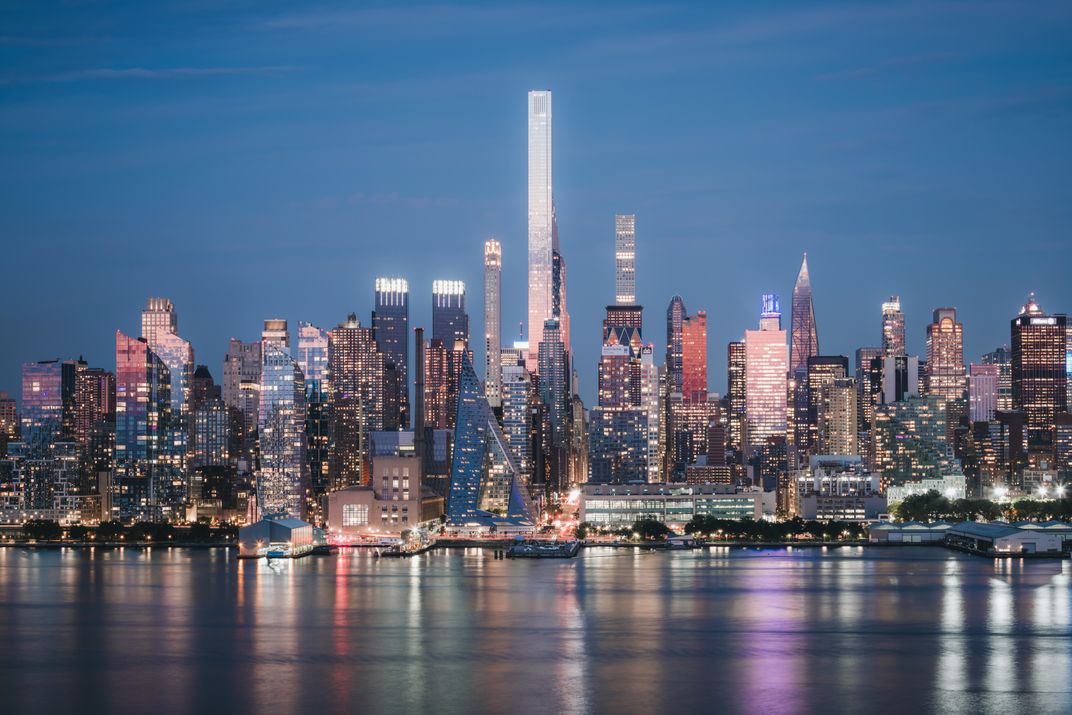 This image mainly captures the scene of Manhattan island with a somewhat symmetric composition.