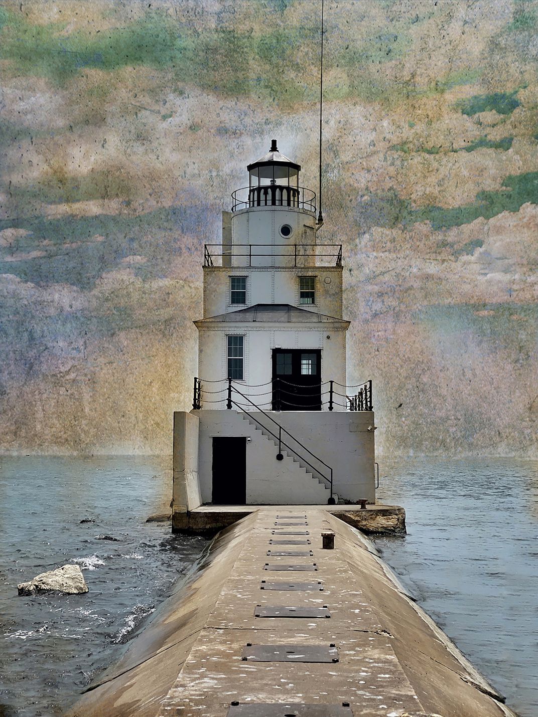 Photo is the lighthouse in Manitowoc WI looking into Lake Michigan