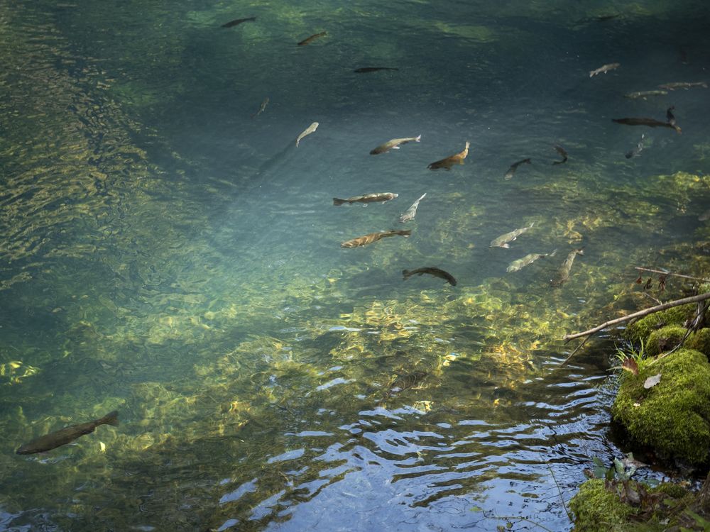 The water at Maramec Spring, Missouri, is so clear that fish in the stream appear suspended in the aether, while colors from the streambed and the reflected sky create a vivid, painterly effect. The spring produces almost 100 million gallons of water per day.