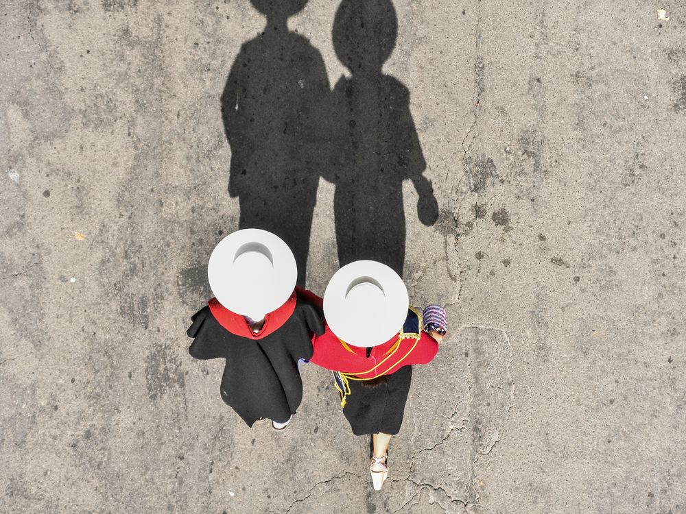 The Ñustas (princesses) are young women from Salasaka—an indigenous community in the Ecuadorian Andes—who commit to preserving their ancestral knowledge, becoming an active link between humanity’s natural past and sustainable future. Here, one of the 2025 candidates walks towards the main event, Inti Raymi, with her Caballero (gentleman) and the sun of the summer solstice high above.