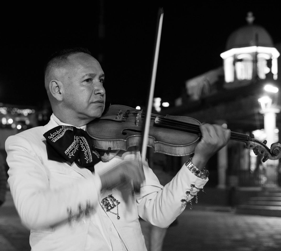 This photo was taken at night at the Plaza in San Miguel de Allende Mexico. I was captivated by the dedication and intensity of the Mariachi, passed down to each generation and band members represented all ages.
