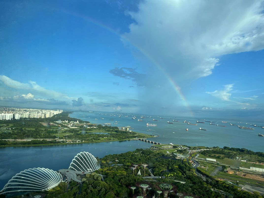 Serendipitous capture of Singapore's Marina Bay at one of its finest moments with a rainbow adorning the beautiful urban landscape.
