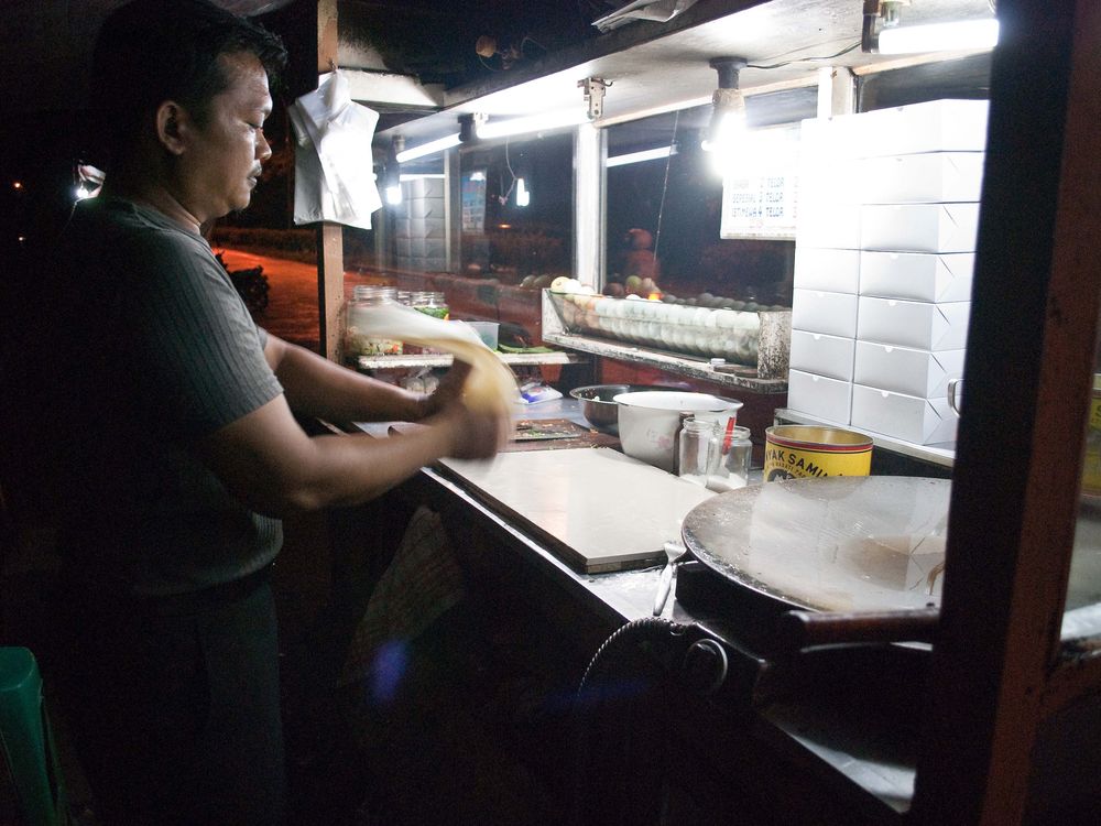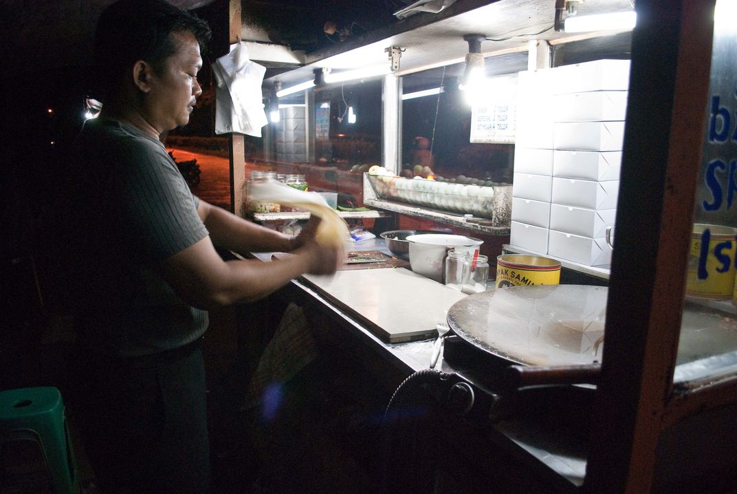 Martabak street vendor. Martabak is a popular dish in Indonesia made of thin pastry and egg filling.