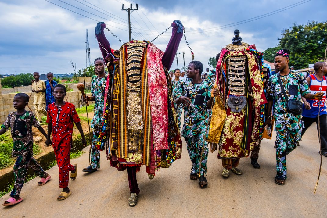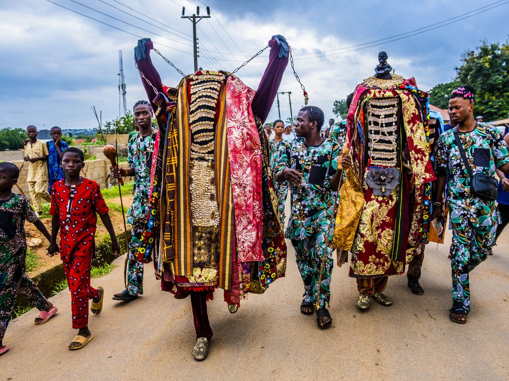 Egungun is a Yoruba cultural tradition in West Africa that involves masquerades and costumed figures that manifest the spirits of departed ancestors. It is a vibrant celebration that serves as a way to honor, and receive blessings from ancestors.