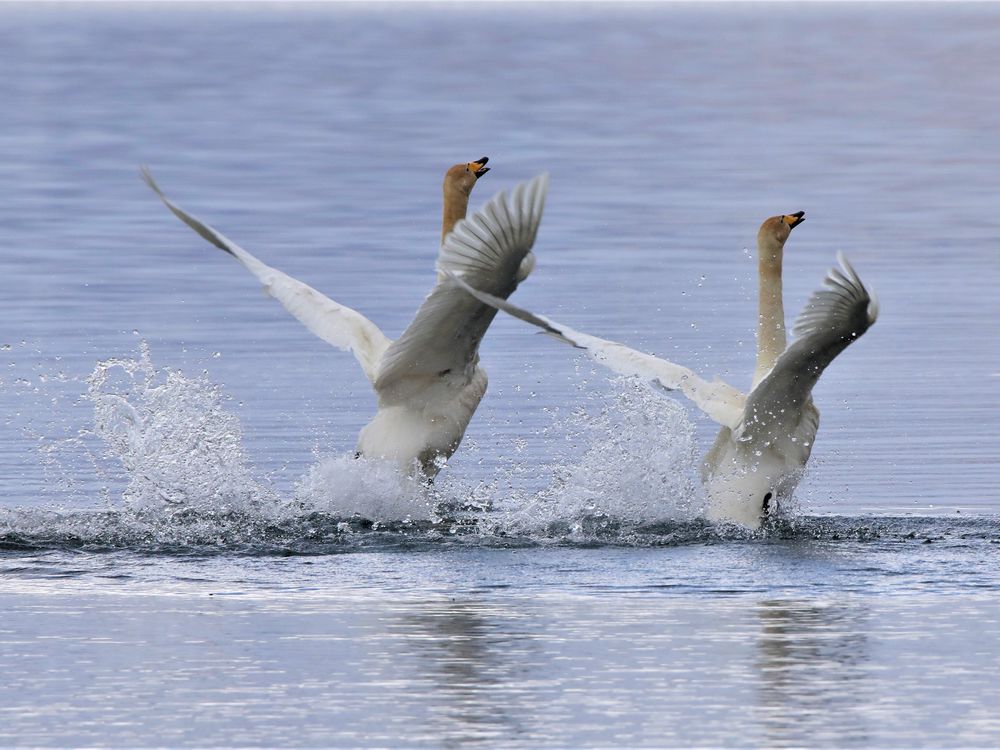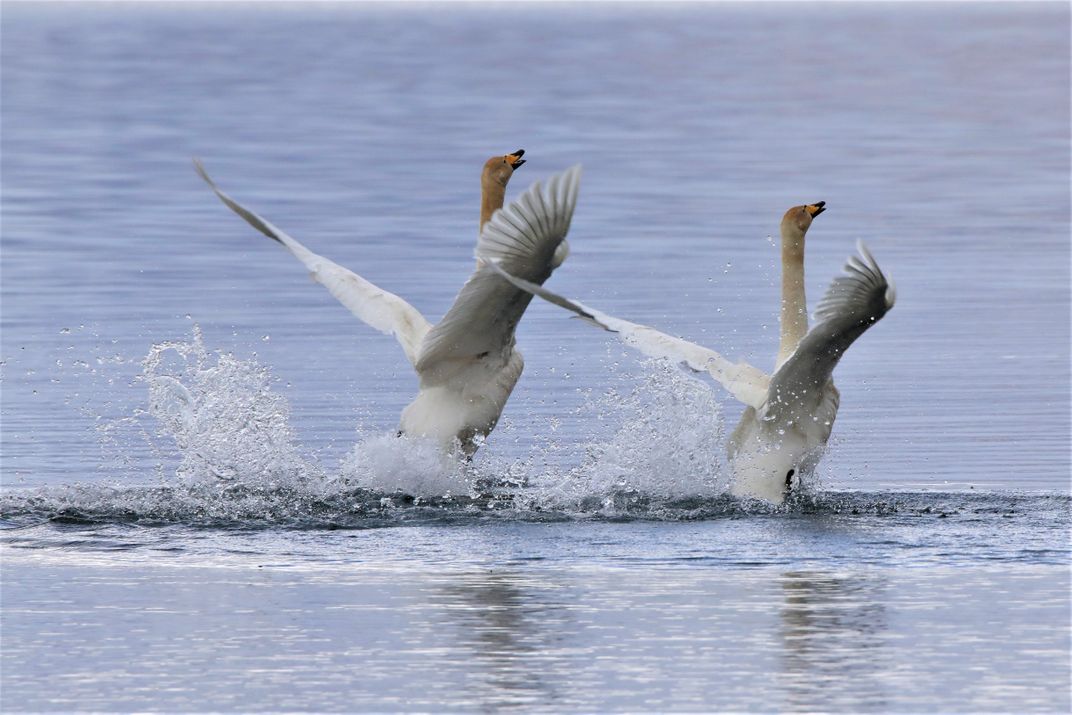 Mating display of Whooper Swans
