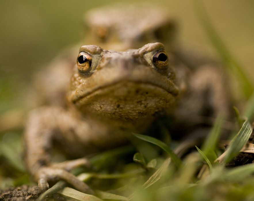 Mating pair of common toad, Bufo bufo, Northumberland, England.