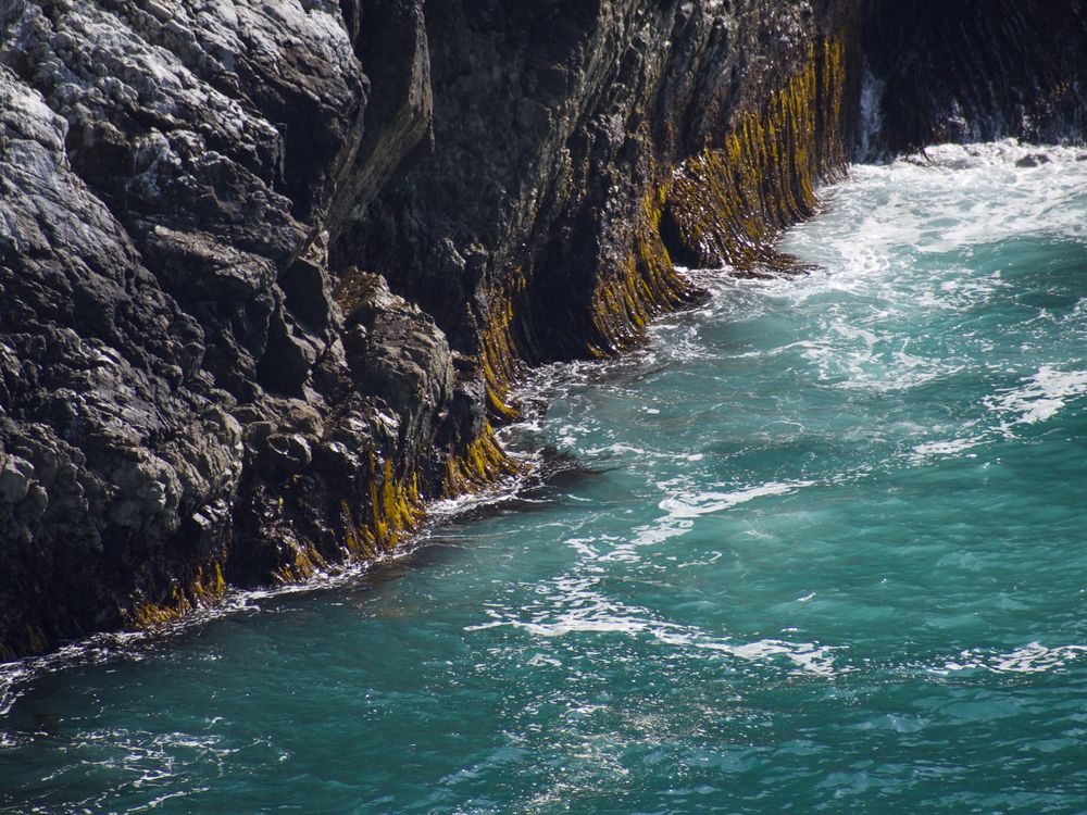 The pristine Pacific waters along McWay Falls in Big Sur, California create a naturally vivid scene. One stands in awe at how the blended rock formations can create such striking colors against the crystal blue of the waters.
