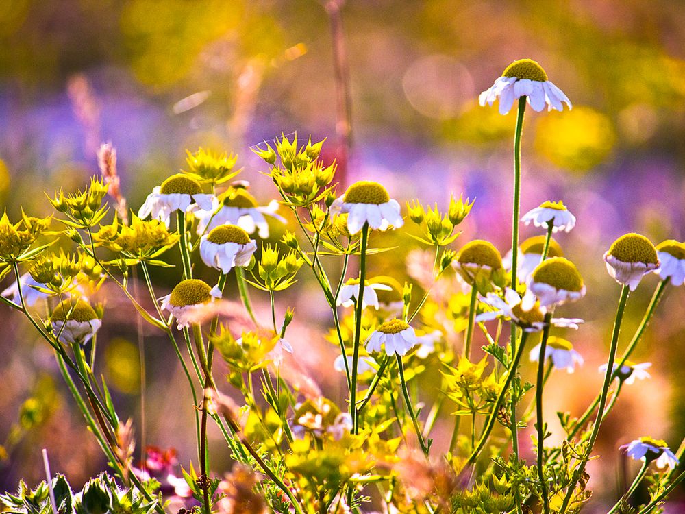 Meadow flowers in afternoon sunlight