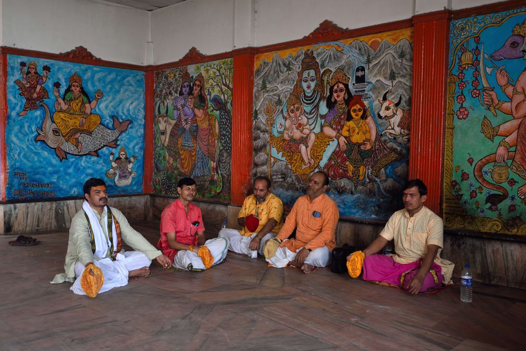 MEDITATION IS BEING TAKEN PLACE AT THE RAMKRISHNAPUR GHAT BY THE LOCAL PRIESTS.