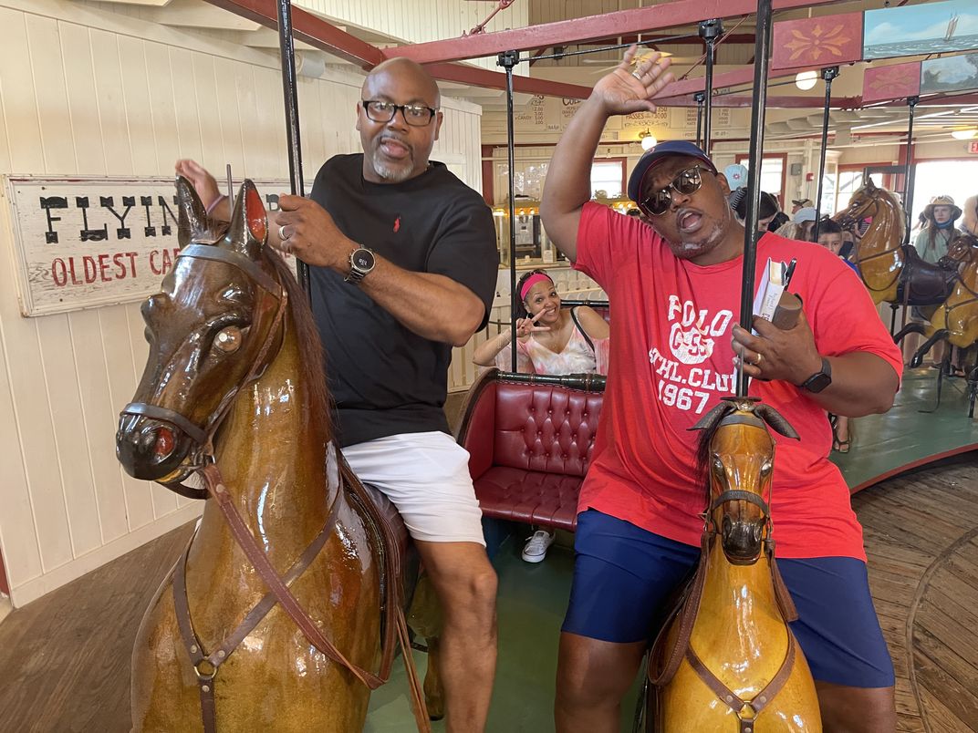 I captured this photograph of friends enjoying the oldest Merry Go Round in the United States. We were visiting Oak Bluffs on Martha’s Vineyard.