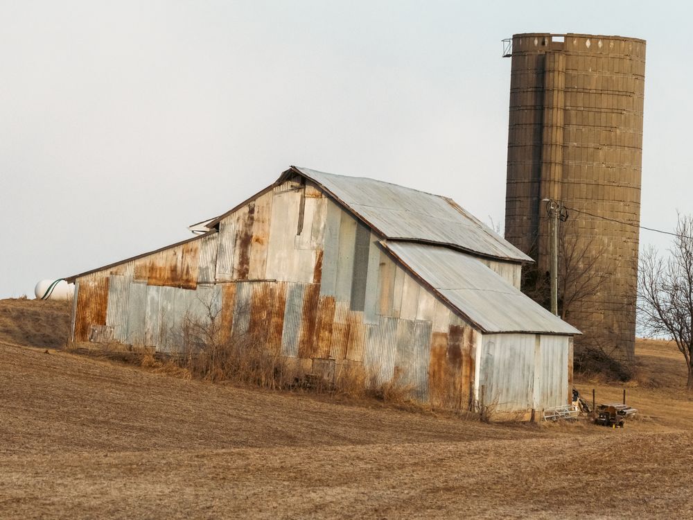 Metal Outbuilding near Oxford, IA. Iowa farm slopes.