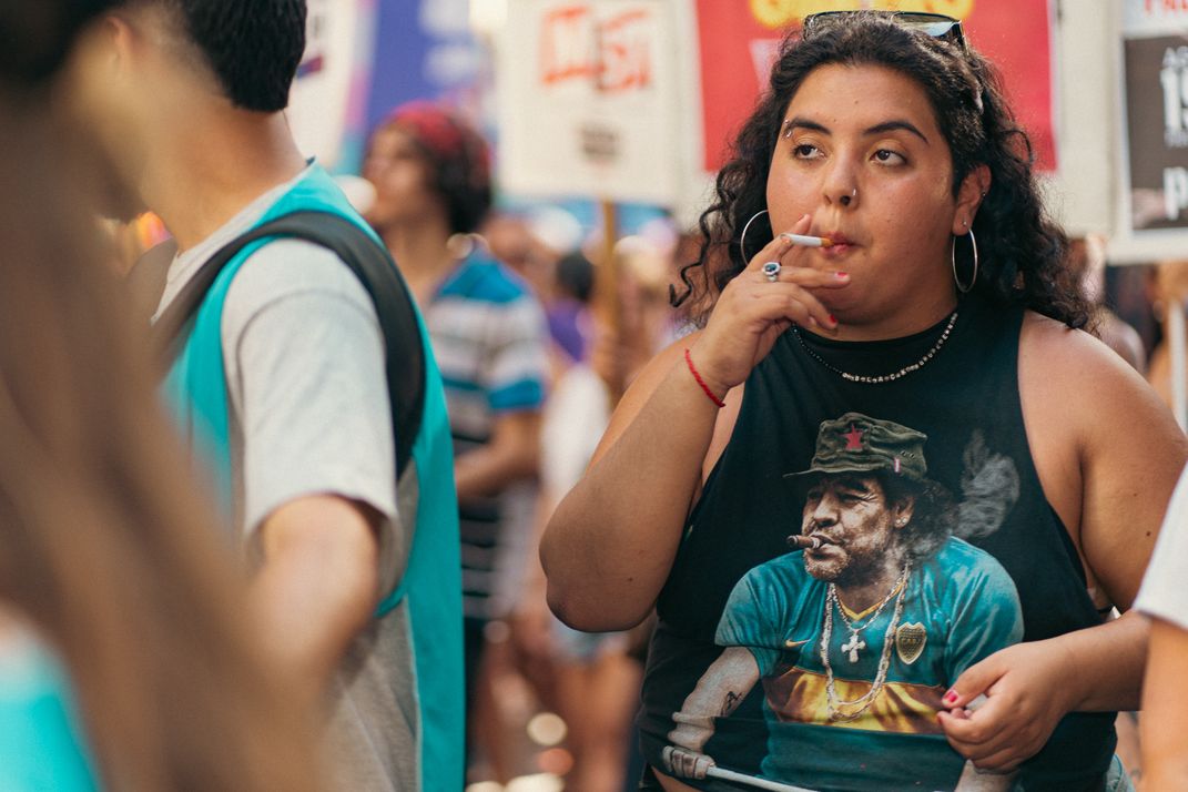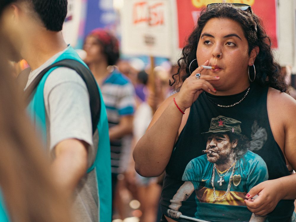 Micaela, a socialist and feminist activist, at the antifascist pride parade in Buenos Aires.