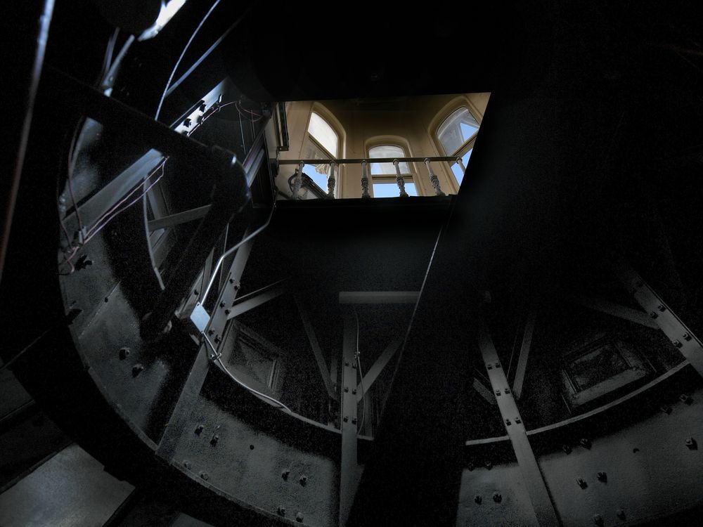 Michigan-based photographer Dave Thompson captures the Capitol’s Lantern Level in a dark, dramatic, almost industrial vision that transforms architecture into cinematic artistry. The ascending circular stairway, cast in shadows and muted tones, draws the eye upward along the dome’s ribs, mechanical lines, and historic metalwork, emphasizing both engineering and grandeur. A sharp slice of blue sky through the Lantern Level windows punctuates the brooding interior, creating tension, contrast, and a sense of monumental scale. Dave’s mastery of light, shadow, and perspective turns this space into an intimate yet awe-inspiring experience, inviting viewers to see Michigan’s Capitol in a bold, new way.