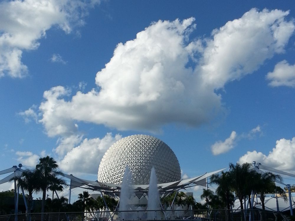 A cloud hovering over the globe at Epcot Center resembles Mickey Mouse.