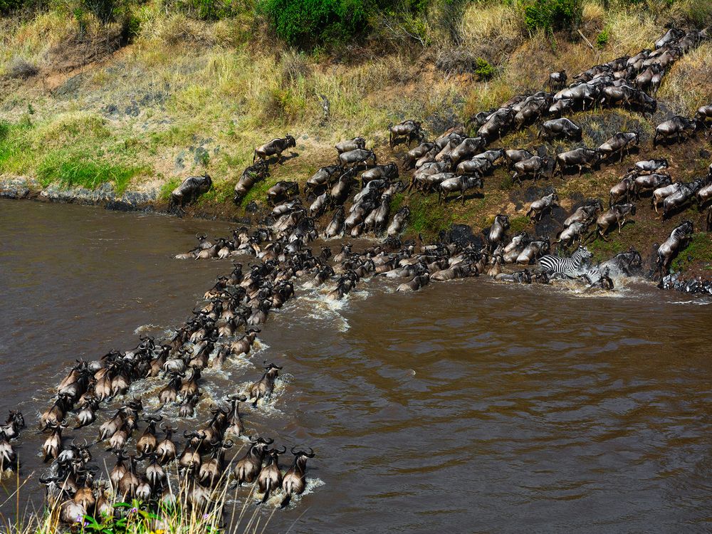 “Migration of the Herd” captures a herd of wildebeest crossing from Kenya to Tanzania during the great migration — a breathtaking scene that reflects the power, rhythm, and endurance of life in the wild.