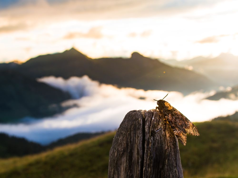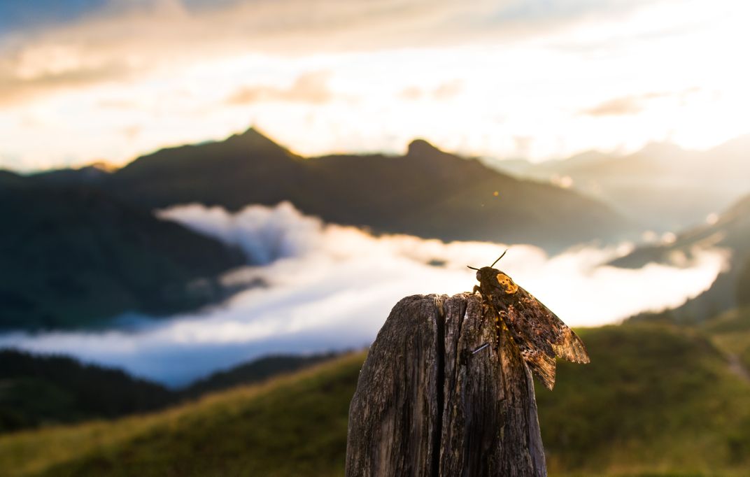 This Death's Head Hawkmoth is sitting on a post high in the Swiss Alps, looking South. She is taking a rest during an arduous migration from Northern Europe right into Africa, covering thousands of kilometres. However, what is truly incredible is the fact that no-one has taught her the route she follows. She carries out a multi-generation strategy and so will only ever migrate in one direction.