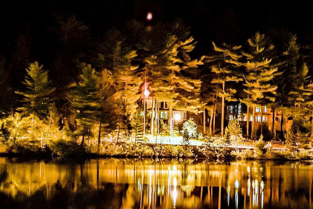 I took this photo on the first warm night of May. I was staying across the lake in a boutique hotel with a beautiful balcony. The Loones were calling and the bullfrogs singing. I