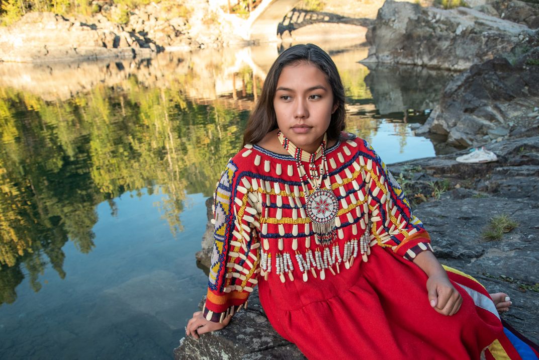 Alia Heavyrunner is the 2021 Miss Blackfeet. Shown here on traditional lands now known as Glacier National Park. Alia's regalia is 8 generations old and considered priceless.