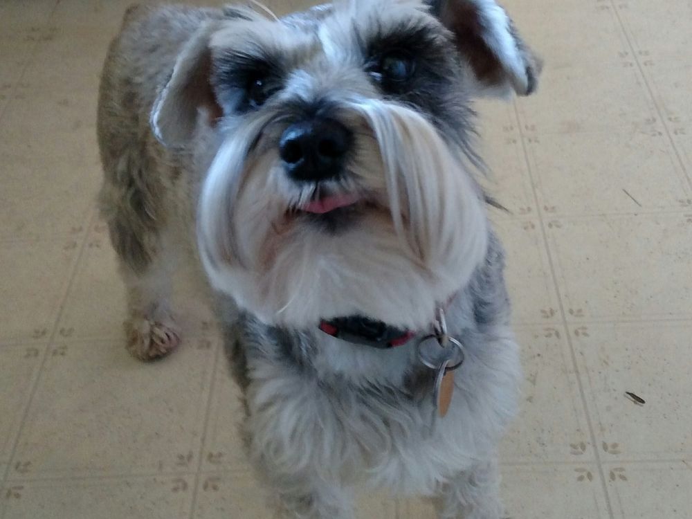Our three year old Miniature schnauzer Molly looking for a treat, as usual.