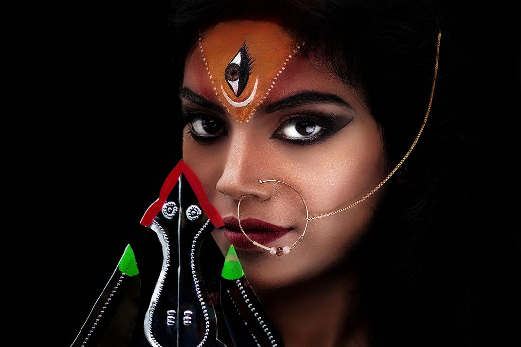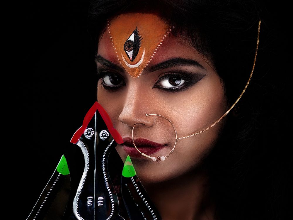 Mistry of face resemble to Goddess angry and beautiful at the same time. Devi Durga, meaning “the Inaccessible” in Hinduism, a principal form of the Goddess, also known as Devi and Shakti. Durga is a major Hindu goddess, worshipped as a principal aspect of the mother goddess Mahadevi. She is associated with protection, strength, motherhood, destruction, and wars