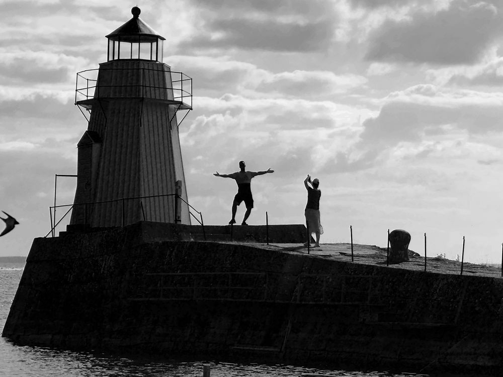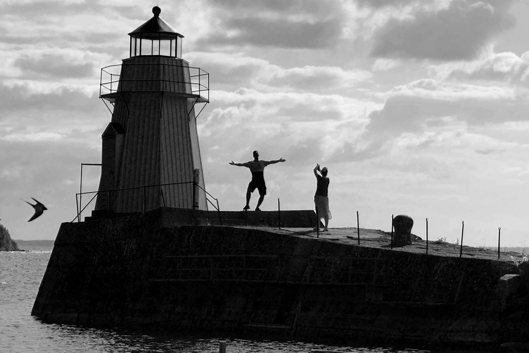 Model stehen tat der junge Mann, um ein Foto von ihm zu schießen.