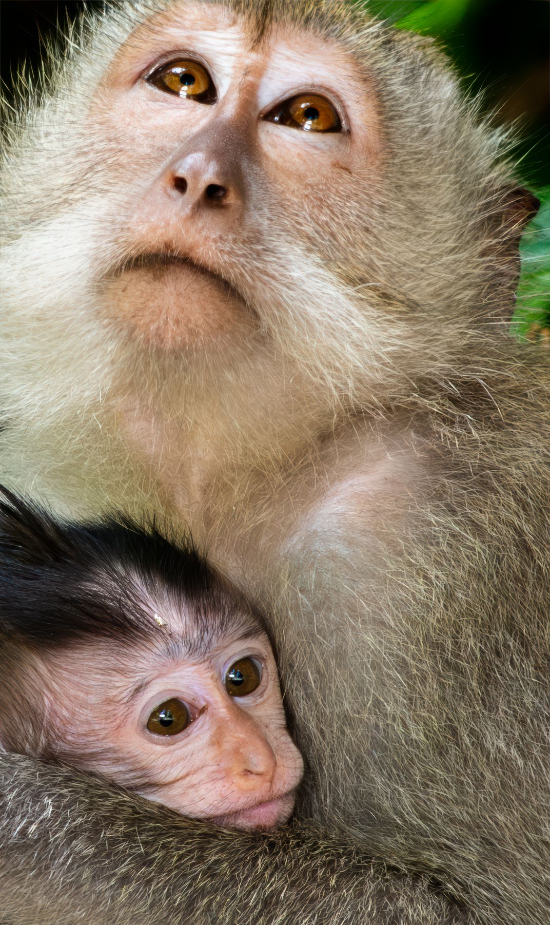 The monkeys were on a stone wall next to a Hindu Temple in Bali indonesia. There were hundreds of monkeys hanging around the temple totally in harmony with the worshipers