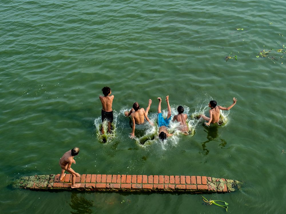 The group of little boys from Hpa-an city in Myanmar are playing a fun game in the natural pool — seeing who can jump higher in the air over the water. I captured this playful moment with my digital camera. Their laughter and energy made the scene full of joy and childhood spirit.