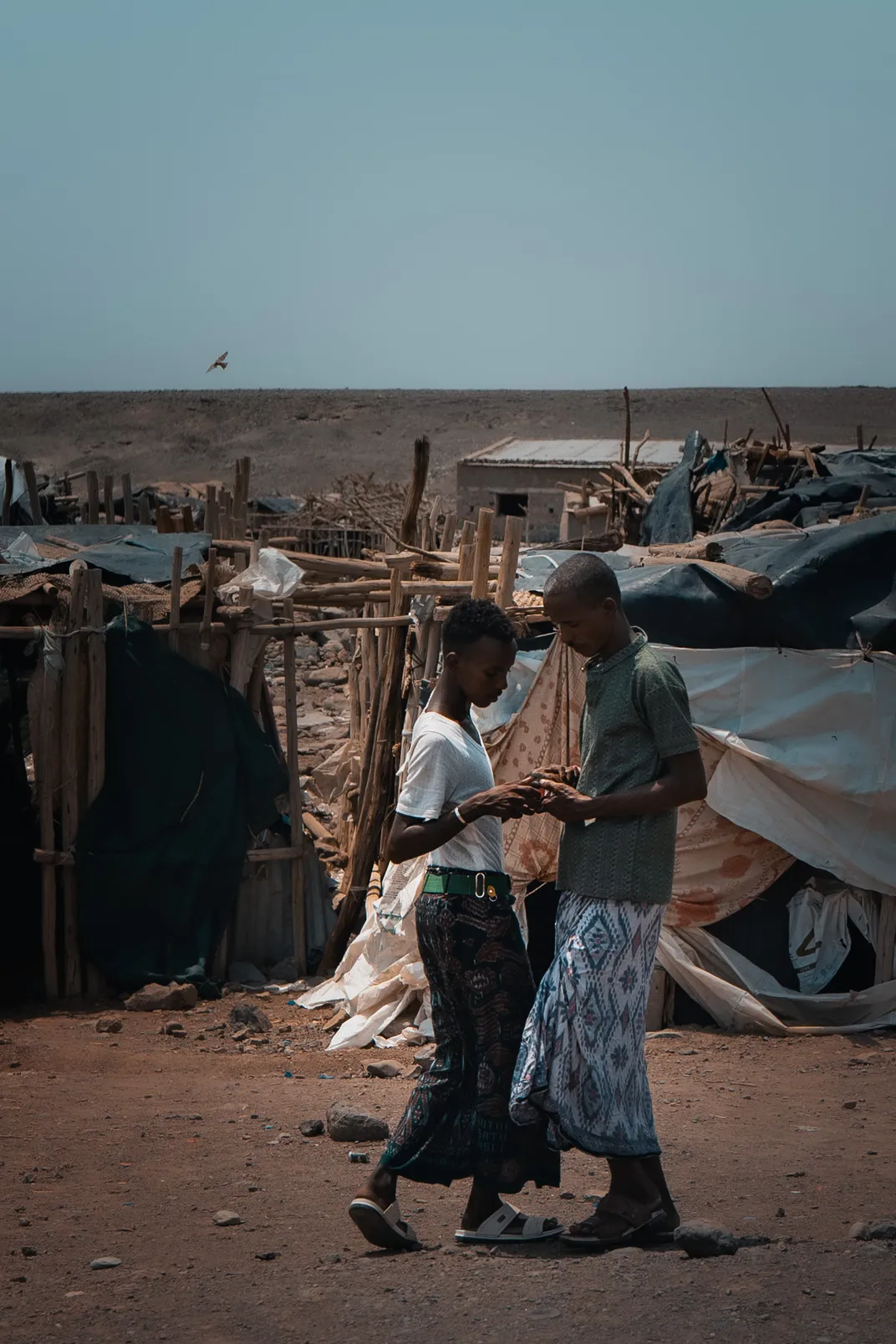 Two young people share a quiet moment in a small settlement near the volcanic region of northern Ethiopia. Amid harsh landscapes and simple structures, their calm interaction reveals the everyday humanity behind one of Earth’s most extreme environments.