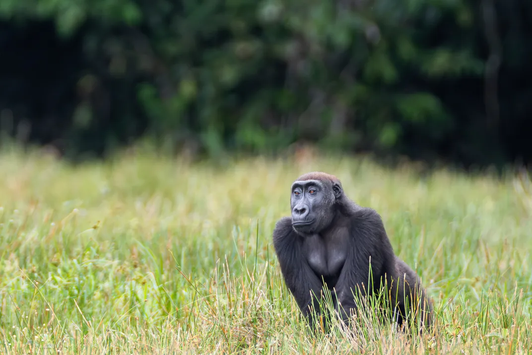 A Western Lowland Gorilla sits in a mineral-rich forest clearing in Odzala-Kokoua Nationalpark. Endangered and elusive, his calm gaze reminds us of the rare moments these gorillas allow humans to witness.