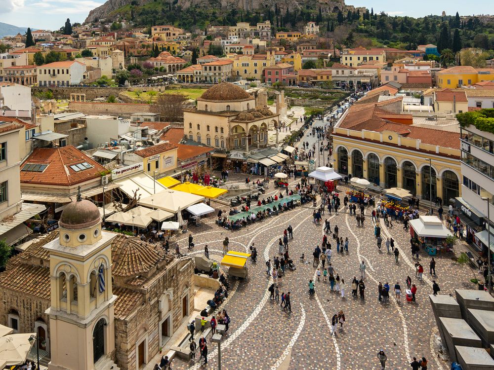 Monastiraki is the beating heart of Athen. It is the link between the old town of Plaka and the modern shopping street of Ermou. It combines the many faces of Athens in a lively and colourful atmosphere. The entire view is crowned with an Acropolis.