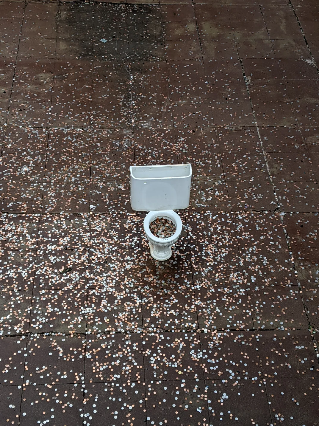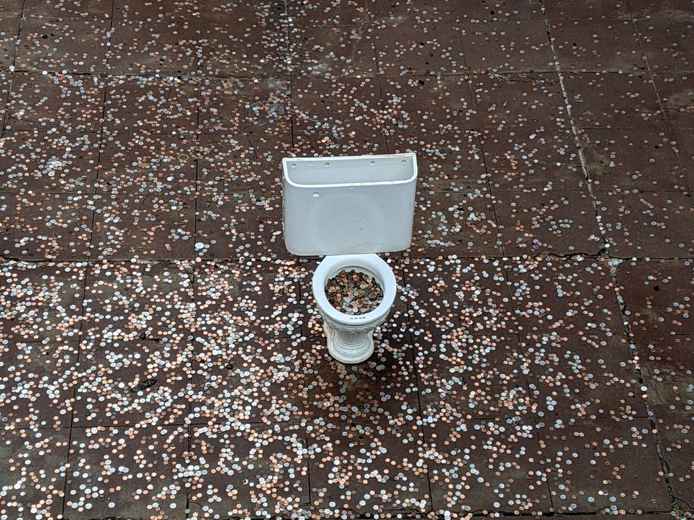 A display at an old mining town of Jerome AZ. Also known as the wishing toilet that explains the coins surrounding the commode. The old house has the top view from the road in this town on the hills.