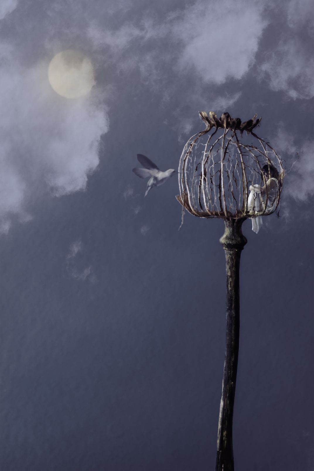 This is a self-portrait I created upon finding this dried out poppy cage.