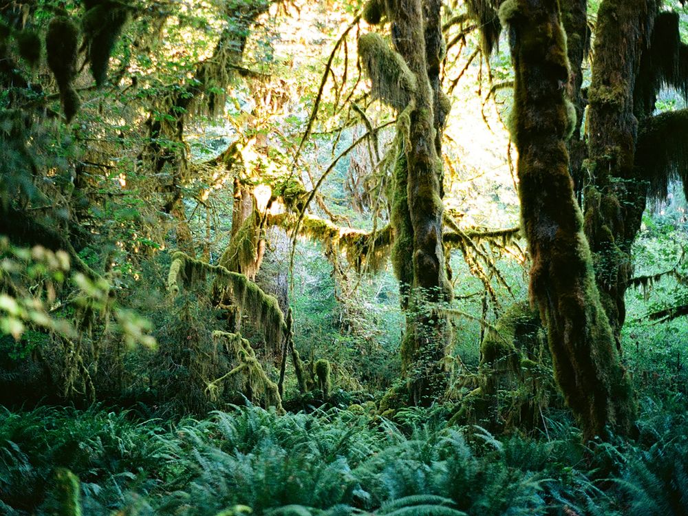 I went out west to do a farming internship in Oregon and found myself at a natural building workshop in Washington. This was my first solo driving trip and I decided to camp around the west side of Washington. I woke up at 5 am and drove into Hoh Rainforest. I took this picture with my 35mm Minolta Film Camera and I was mesmerized by this spot in the Hall of Mosses because of the way the light came through and glimmered off of the ferns. This moment was also right after I saw an elk for the first time!