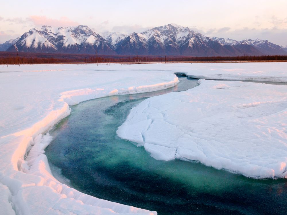 The Chara desert is notable for the fact that just a few steps from the sand dunes there is ice with deep canyons and picturesquely curved gullies.