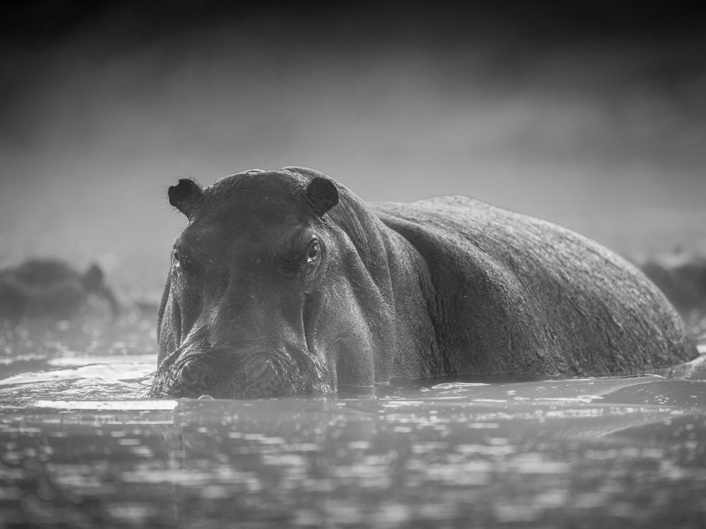 Sun had just started to rise. We arrive at the river's edge, where a bloat of hippos were soaking in the water. Heat from their bodies caused the water to evaporate into the cool air, creating a mist on the water. This hippo was locked in on my position. I could only assume it was trying to figure out if it should charge me or leave me alone. Fortunately for me, it deemed I held a safe distance.