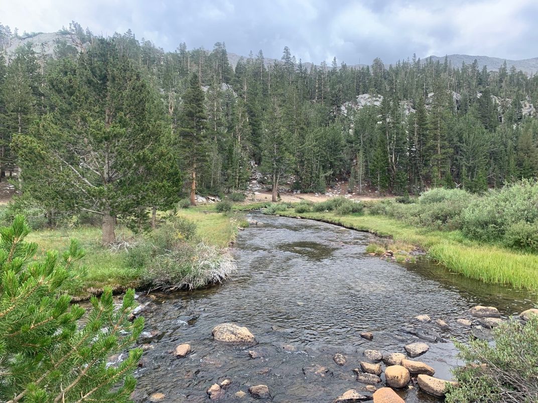 This is two miles into the Mosquito Flats hike near Bishop, CA. Off the trail to the right is the incredible view of a natural stream coming down through the trees. This photo was captured just before it started to thunderstorm on us on our hike back out of the site.