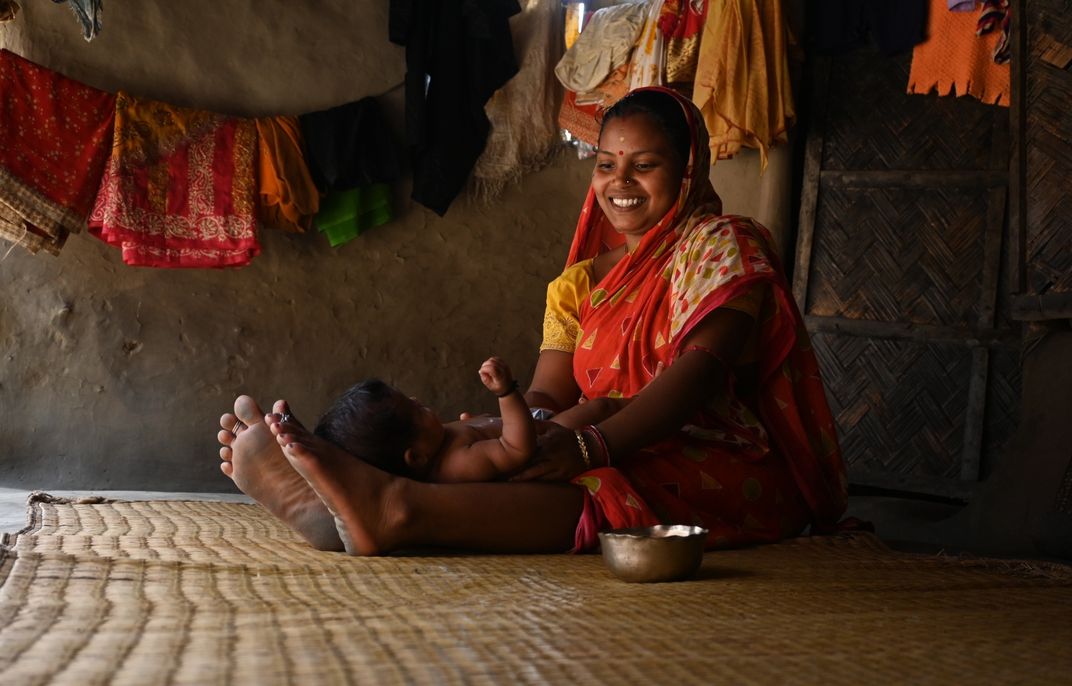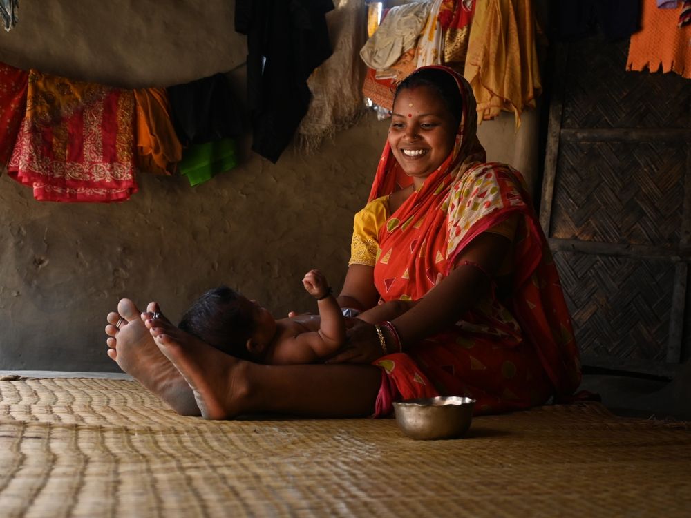 The bond between a mother and her child is eternal. The smile on the lady's face depicts the depth of her joys seeing the tender face of her child.