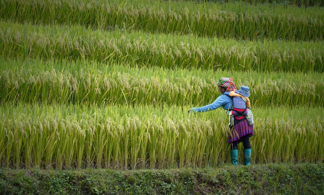 walking in rice fields of north Vietnam, in the Hmong ethnic area, I saw this every day situation. the rice work is the main occupation in the mountains
