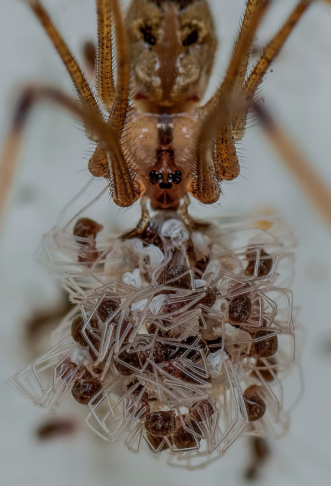 Cellar spider carrying its its babies
