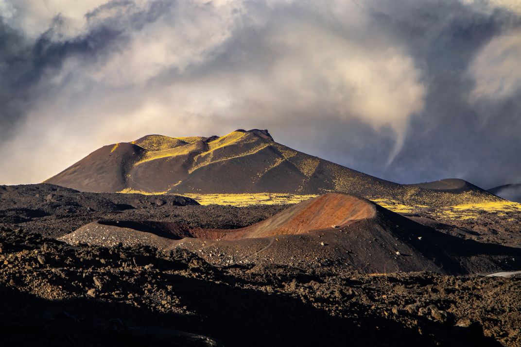 Mount Etna is an active volcano located in Sicily (Italy). It is the highest active volcano in Europe (3329 meters) and is part of the Unesco World Heritage. Due to its continuous activity it is one of the most studied and monitored volcanoes in the world. Although the highest craters continuously emit steam, the most recent eruptions have occurred from the formation of new craters at lower heights, such as the one that can be seen in the foreground of this image.