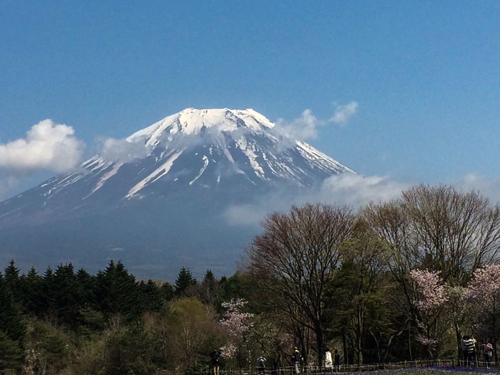 Fuji, the god of all mountains, surrounded by crown of clouds.