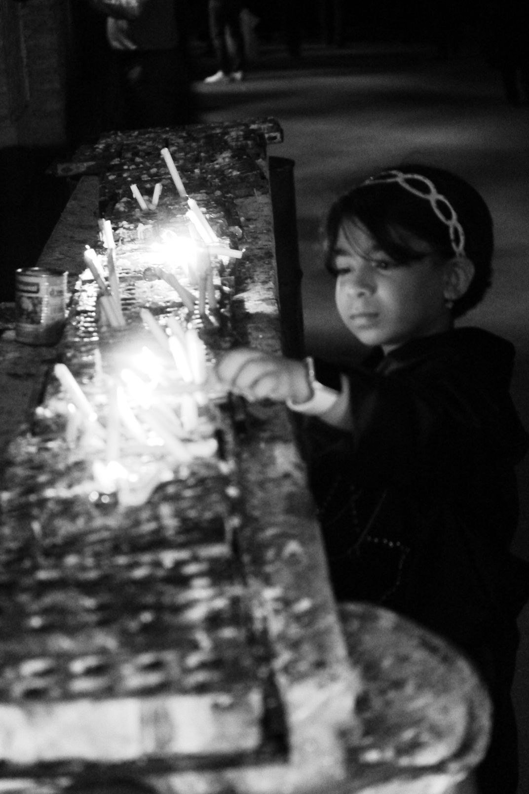 A girl who is lighting a candle for Muharram commemoration and mourning according to the old ritual