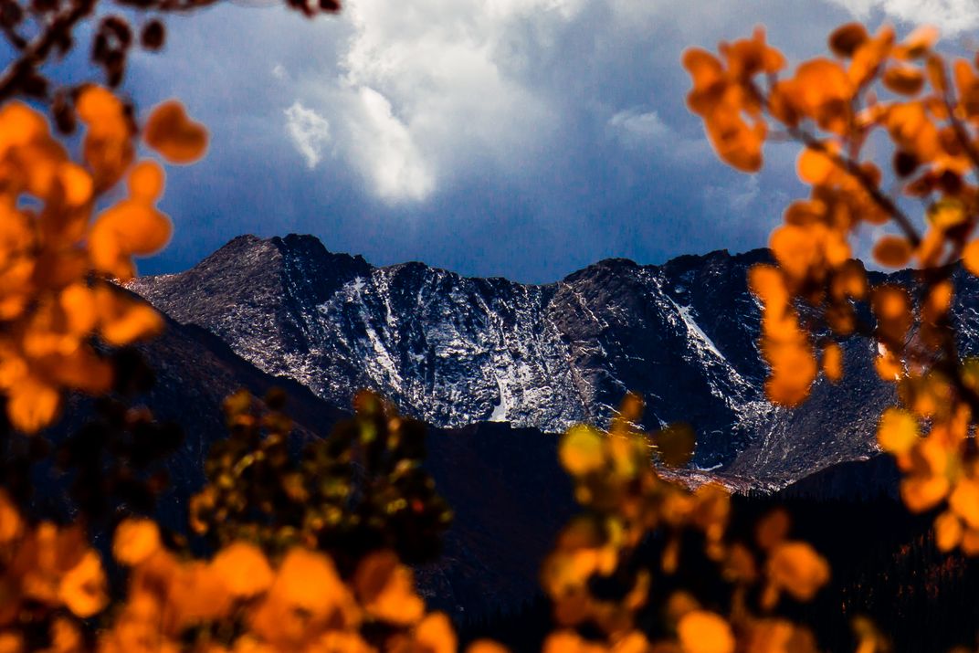 This is a shot of Mt. Evans just outside Denver, Colorado. The leaves on the birch tree were a beautiful orange and provided a perfect frame for the mountain.
