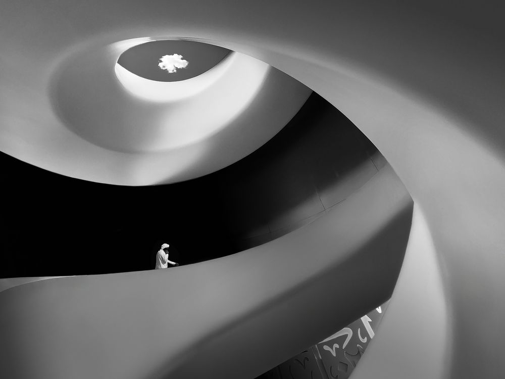 This photo was taken at the Museum of the Future in Dubai, and since the museum’s concept is centered around progress and the future, I also incorporated elements like clouds, a human figure, and staircases to reflect that theme.