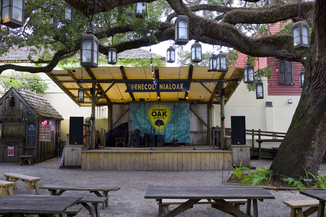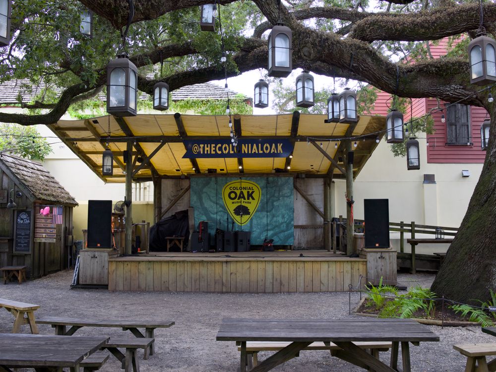 This is the Colonial Oak music plaza for concert venues opened to the public during the nights. This is located right on the site of a Saint Georges street. This tells a different story during the daytime.